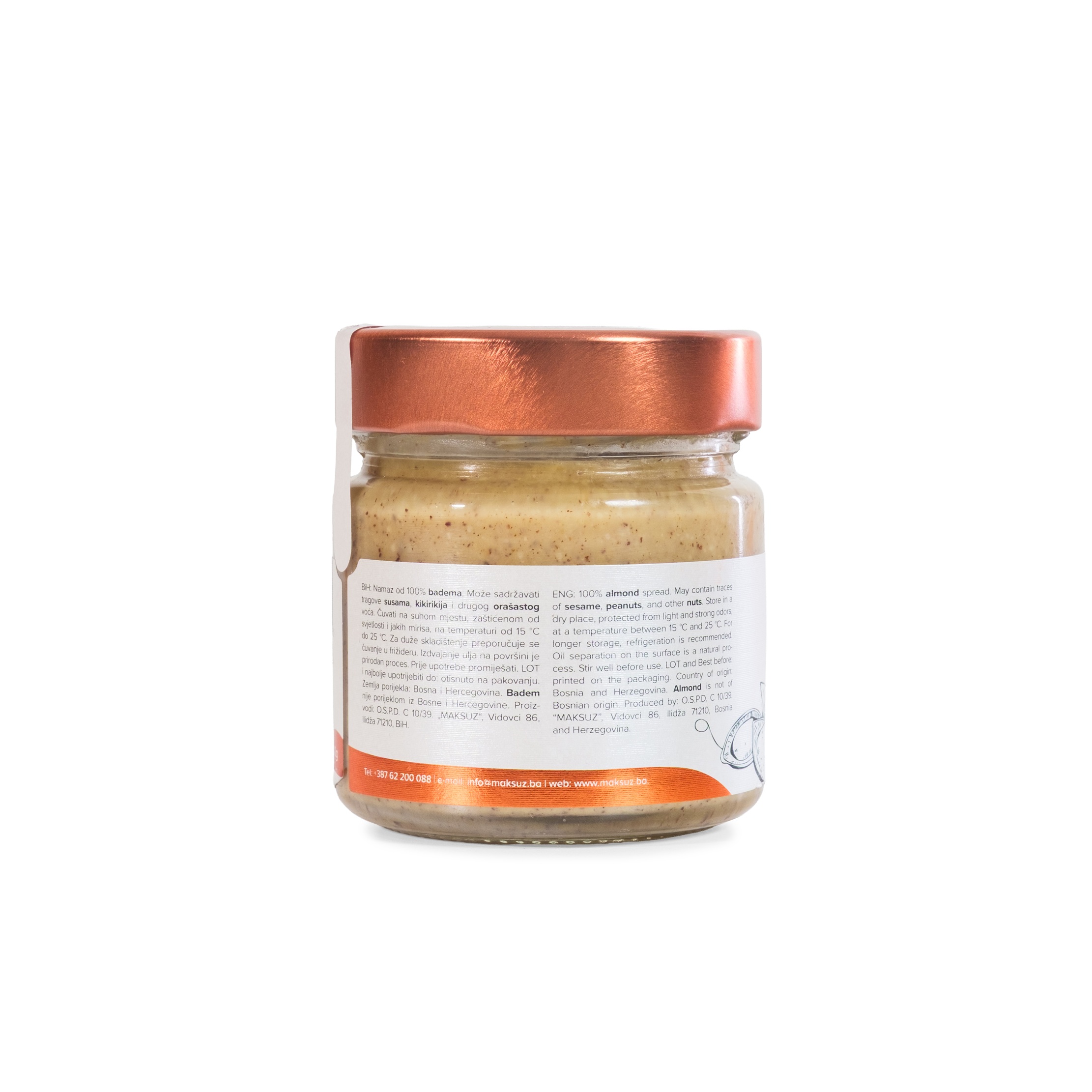 Bademov puter je izuzetno zdrav namaz jer se pravi od čistog badema i bez umjetnih pojačivača i boja.